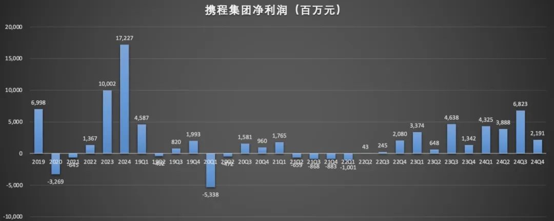 2024年四季度,携程集团“大赚特赚”的日子似乎按下了暂停键。